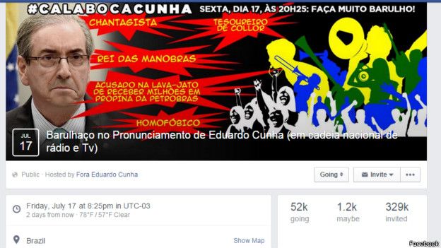 Agora, três universitários mobilizam mais de 50 mil pessoas para o que chamam de "barulhaço" – protesto marcado para ocorrer durante o discurso em cadeia nacional de Eduardo Cunha, presidente da Câmara dos Deputados, na noite desta sexta-feira.